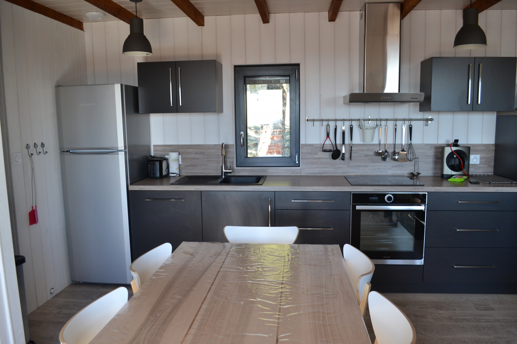 - Cuisine aménagée ouverte sur salle à manger et salon